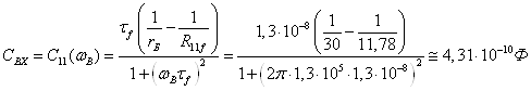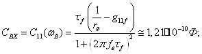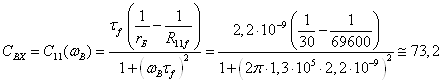 Для определения входной ёмкости каскада предположим с большой долей вероятности, что двухтактный УМ это два эмиттерных повторителя работающих на разные полупериоды гармонического сигнала но на одну нагрузку. Следовательно, входная ёмкость каскада равна параллельному соединению двух входных емкостей аналогичных эмиттерных повторителей, ёмкость которых легко рассчитать: