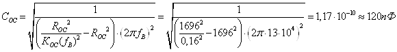 Таким образом нам осталось лишь задаться коэффициентом передачи по напряжению на частоте Fв и найти значение ёмкости в цепи ООС: