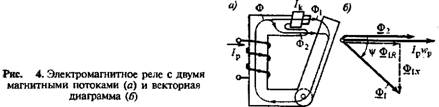 Из следует, что электромагнитный принцип можно использовать для выполнения реле постоянного и реле переменного тока, так как мгновенное значение электромагнитной силы F3i пропорционально квадрату тока и, следовательно, не зависит от его знака. При линейной зависимости между потоком Ф и током /р значение /L пропорционально квадрату мгновенного значения потока Ф„ т. е.