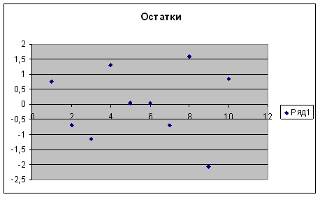 Вычисленные остатки приведены в таблице 2. Остаточная сумма квадратов составила 12,02. Дисперсия остатков составила: