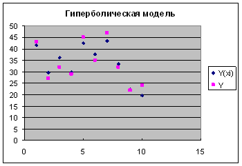 Y(x) = 54,1842 + (-415,755) * 1/x – гиперболическое уравнение регрессии.