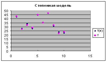 Как мы видим, степенная регрессия наиболее интересна в экономическом смысле, потому что у нее самый низкий показатель средней ошибки аппроксимации, самый высокий показатель эластичности и детерминации. Это говорит о том, что у степенной регрессионной модели высокое качество, она предлагает наибольшую прибыль и более зависима от фактора Х (капиталовложений).