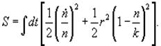 В качестве функционала действия, который приведет к логистическому уравнению роста популяции численности , было рассмотрено следующее выражение