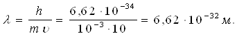 Формула (1.4) називається формулою де Бройля. Вона дає можливість оцінити довжину хвилі мікроскопічної частинки масоюm , яка рухається з швидкістю u. У макроскопічних тіл ці властивості не проявляються. Так, у тіла масою 1 г, яке летить з швидкістю 10 м/с довжина хвилі де Бройля дорівнює