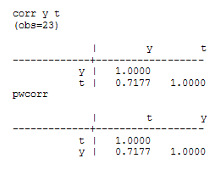 Применим ПО MS Excel 2003 и Stata 7.0. Посчитаем коэффициент корреляции: