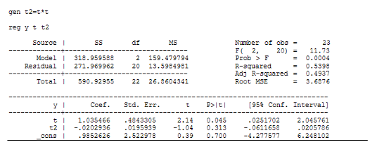 в модели параболической регрессии не значимы согласно t-критерию Стьюдента.