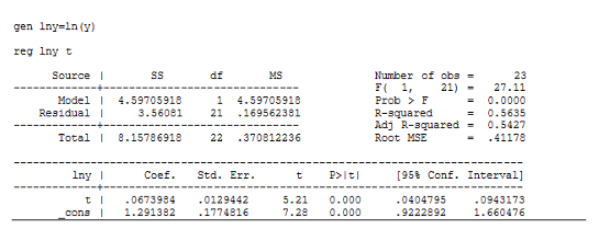 Применим модель линейной регрессии для аналитического выравнивания исходного ряда. Модель такова: