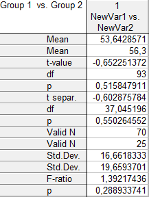 - df – число степеней свободы t‑критерия при условии неравных дисперсий.