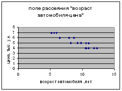 Рисунок 1 – Поле рассеяния «возраст автомобиля-цена»