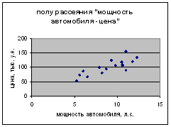 Рисунок 2 – Поле рассеяния «мощность автомобиля-цена»