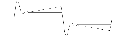 Чтобы движение было равномерным, необходимо постоянство вращающего момента, а для этого в свою очередь требуется постоянство тока в обмотках. В момент коммутации и смены направления вращения возникают броски тока за счет инерционности системы управления (рис 6). В некоторых случаях ток может линейно нарастать (штриховая линия на рисунке). Требуемую форму тока обеспечивает специальная система регулирования с обратной связью через датчик угла поворота. Она учитывает механические и электрические характеристики системы. В режиме М должен быть задан определенный угол поворота пьезопреобразователя. Для этого система регулирования с высокой частотой реверсирует ток в обмотках статора, удерживая тем самым ротор в одном положении.