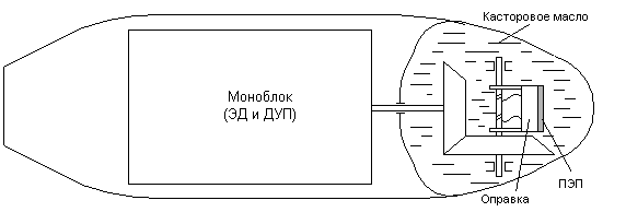 вибрации. Так как преобразователь в основном располагается в камере с иммерсионной жидкостью, то он должен иметь обтекаемую форму, чтобы испытывать наименьшее сопротивление и не создавать завихрений в жидкости при своем движении. Простейшая конструкция преобразователя движения предлагается на рис.11.