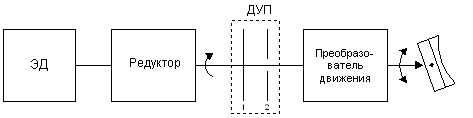В датчиках с непрерывным вращением используются стандартные двигатели постоянного тока. Так как обычно они высокоскоростные, приходится понижать частоту вращения с помощью редукторов примерно с 3000 об/мин до 300 об/мин. Кроме того, нужен специальный механизм для преобразования вращательного движения в колебательное. В таком датчике перспективно применение ДУП с оптоэлектронными преобразователями. Принцип этих датчиков хорошо известен. Они применяются, например, в «мыши» компьютера для управления положением курсора. Один из возможных вариантов кинематической схемы датчика с односторонне вращающимся двигателем и ДУП оптронного типа приведен на рис.9.