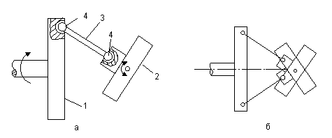 Передача движения от вала редуктора на пьезопреобразователь 1 осуществляется с помощью диска 2 (водило) через шатун 3 и шарниры 4 (рис 11,а). Так как ПЭП закреплен на оси, то он совершает качательное движение. Шатун при этом вращается по конической поверхности и все время проворачивается в шарнирах (рис. 11, б). Эта конструкция, конечно, не отвечает поставленным выше требованиям. На самом деле она значительно сложнее. Основной недостаток датчиков с качающимся ПЭП – неприятные ощущения вибрации, которые испытывает врач. Они накапливаются в течение длительного времени и иногда приводят к развитию синдрома вибраций. Поэтому в некоторых странах такие датчики даже запрещены. Тем не менее, секторные механические датчики в ряде случаев практически незаменимы (внутриполостные применения).