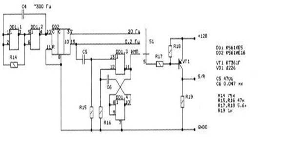 Для формирования сигналов сброса-установки (S/R) служит генератор на микросхемах К561ЛЕ5, К561ИЕ16.