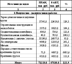 Анализ доходов является завершающим этапом грузооборота средств предприятия, конечным звеном производственно-хозяйственной деятельности. Общий объем доходов определяется как сумма доходов от перевозок и доходов от выполнения транспортно-экспедиционноых работ, погрузочно-разгрузочных операций и прочих работ и услуг. Наибольший удельный вес в общей сумме доходов занимают доходы, полученные от не основной деятельности – перевозок. Для предприятия Минсжелдортранс источники доходов подразделяются на группы: