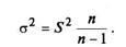 Однако дисперсия выборочной совокупности не равна дисперсии генеральной совокупности, и следовательно, средние ошибки выборки, рассчитанные по формулам (7) и (8), будут приближенными. Но в теории вероятностей доказано, что генеральная дисперсия выражается через выборную следующим соотношением: