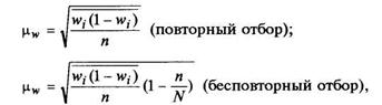 Аналогичным образом может быть записана формула предельной ошибки выборки для доли Δw при повторном отборе:
