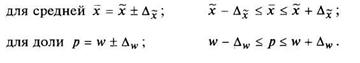 Предельная ошибка выборки позволяет определить предельные значения характеристик генеральной совокупности и их доверительные интервалы: