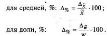 Наряду с абсолютным значением предельной ошибки выборки рассчитывается и предельная относительная ошибка выборки, которая определяется как процентное отношение предельной ошибки выборки к соответствующей характеристике выборочной совокупности: