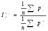 4. далее происходит сбор данных о ценах товаров-представителей, для чего создается перечень торговых точек, в которых должна быть произведена регистрация цен. Данные о средних ценах товаров-представителей позволяют исчислить индивидуальные индексы цен на эти товары. В международных рекомендациях расходы на наиболее низком уровне классификации называются элементарными агрегатами. Для исчисления среднего индекса цен элементарного агрегата, как правило, используется формула средней геометрической невзвешенной из индивидуальных индексов цен, которую называют индексом Джевонса. Формула этого индекса имеет следующий вид: