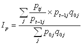 Индекс Янга представляет собой взвешенную среднеарифметическую из элементарных индексов цен, при исчислении которой в качестве весов используются структура расходов периода , который не совпадает с отчетным периодом t или с базисным 0, но с которым производится сравнение цен. Для исчисления ИПЦ в целом и на уровне наиболее крупных групп классификации потребительских расходов возможно применение и других формул, например формулы Пааше: