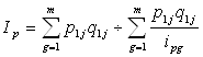 Далее на основе индексов цен по конкретным товарам-представителям определяются сводные индексы цен по укрупненным товарным группам, подотраслям и отраслям промышленности, в целом промышленной продукции с использованием весов базисного года. Для расчета сводных индексов используется формула Ласпейреса с рекурсивной системой расчета стоимостных весов: