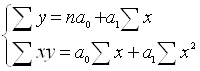 Система нормальных уравнений для нахождения параметров линейной парной регрессии имеет вид: