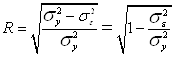 Этот показатель называется индексом детерминации (причинности). Он выражает долю факторной дисперсии, т.е. характеризует, какая часть общей вариации результативного признака y объясняется изменением факторного признака x. На основе предыдущей формулы определяется индекс корреляции R:
