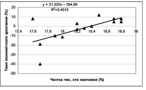 Рис.1. Зв'язок між темпом економічного зростання та часткою тих, хто навчався