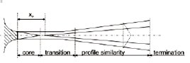 Дело в том, что всегда существует область, где не было никакого плавного смешивания газа с окружающим воздухом, за исключением смешивания, вызванного процессами распространения. Эту область называют «основной зоной» ее длина Хр существенно отличается для двух способов оттока. Если в воздух проникают вентиляционные струи, то эта длина может быть представлена как Хр=d/m, где d – диаметр выхода, а m – параметр, который изменяется от 0,1 для полностью ламинарного оттока до 0,3 для бурного оттока. Для оттока газа, который имеет другой состав по отношению к окружающему газу (например гелий в воздух) значение m может быть различно, вследствие чего должно быть проведено моделирование течения.