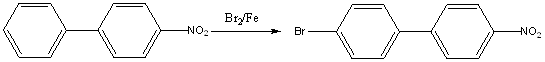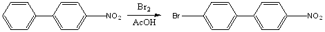 В работе (2) авторы получали 4-бром-4’-нитробифенил при перемешивании смеси при нагревании 4-нитробифенила в растворе ледяной уксусной кислоты с бромом в отсутствие катализатора, причем продолжительное нагревание уменьшало выход (выход 80%).
