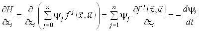 Продиференціюємо функцію Понтрягіна (9) за змінними