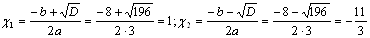 1. D > 0, тогда уравнение (3) имеет два корня, вычисляемые по формуле