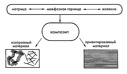 Композиционными называют материалы, состоящие из двух или более фаз с четкой межфазной границей системы, которые содержат усиливающие (армирующие) элементы (волокна, пластины, частицы) с различным отношением длины к сечению (что и создает усиливающий эффект), погруженные в полимерную матрицу.