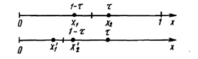 Рассмотрим сначала отрезок (0; 1) и для определенности предположим, что при его уменьшении исключается правая часть этого отрезка. Пусть х2 = t, тогда симметрично расположенная точка х1 = 1–t (рис.2.2).
