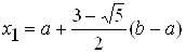 Рассмотрим такое симметричное расположение точек x1 и х2 на отрезке (а; ), при котором одна из них становится пробной точкой и на новом отрезке, полученном после исключения части исходного отрезка. Использование таких точек позволяет на каждой итерации метода исключения отрезков, кроме первой, ограничиться определением только одного значения f(x),так как другое значение уже найдено на одной из предыдущих итераций.