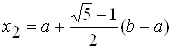 Рис. 2.2.-Определение пробных точек в методе золотого сечения