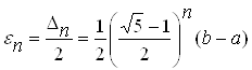 4. В конце вычислений по методу золотого сечения в качестве приближенного значения х* можно взять середину последнего из полученных отрезков
