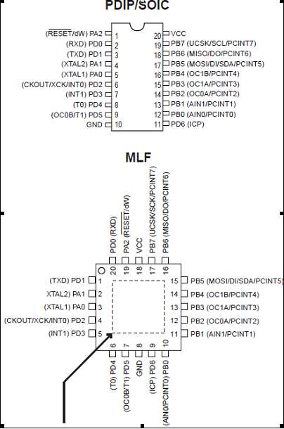 Рис. 1 - Назначения выводов микросхемы ATtiny2313