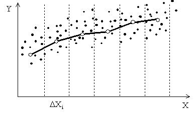 отрезками прямых. Полученная ломаная линия называется эмпирической линией регрессии