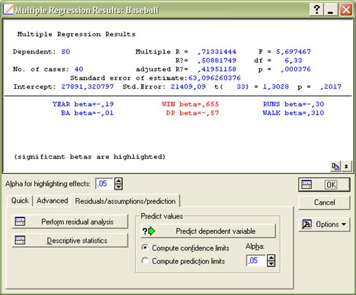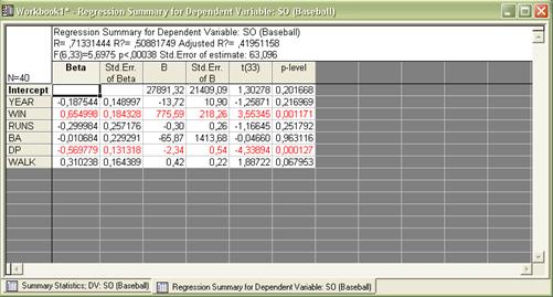 1) параметры модели βi(для данной модели существенными являются переменные WIN и DP):