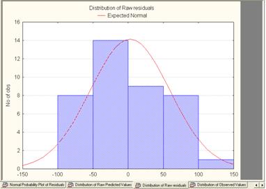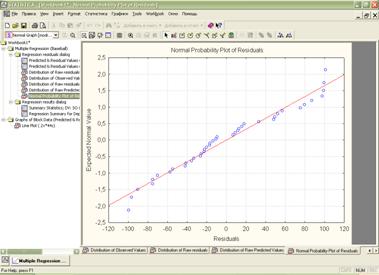 Для проведения углубленного анализа уравнения регрессии прежде всего необходимо убедиться в том, что вектор ошибок Е распределен по нормальному закону. Для построения доверительных интервалов коэффициентов модели, предсказанных значений уравнения регрессии, среднего значения используются стандартные статистические распределения, требующие нормальности распределений.