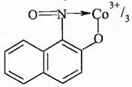 В реакции Co2+ с реагентом Ильинского при участии растворимого кислорода получается нерастворимое темно-красное хелатное соединение кобальта (III):