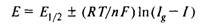 где Е и Е1/2 — потенциал в любой точке полярографической волны и на половине ее высоты, соответственно;