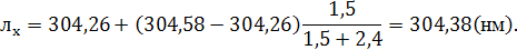 9. (6,10-11) Вычислить длину волны линии лх, если расстояние её до линии железа л1 = 304,26 нм составляет 1,5 мм, а до линии железа л2=304,58 нм - 2,4 мм