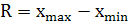 – разница между двумя крайними значениями в ряду величин