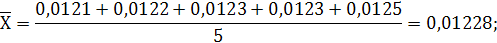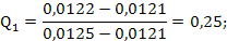 Наличие грубых ошибок (промахов) оцениваем по Q-критерию. Располагаем экспериментальные данные в порядке возрастания величин 0,0121, 0,0122, 0,0123, 0,0123, 0,0125.