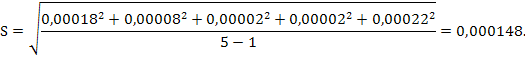 14. (10) Рассчитайте случайную ошибку определения серы в стали, если в ходе анализа были получены следующие данные: 0,0123; 0,0125; 0,0121; 0,0123; 0,0122 % S