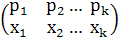 (первая строка - значение случайной величины в минутах, вторая - соответствующие вероятности);